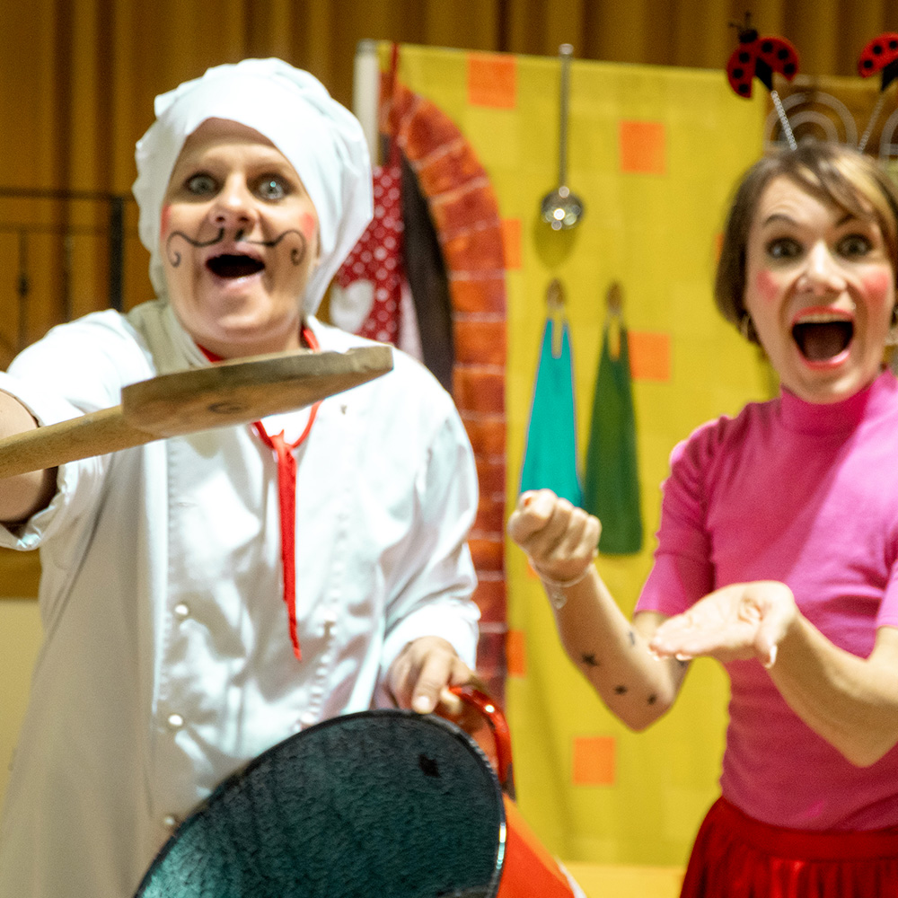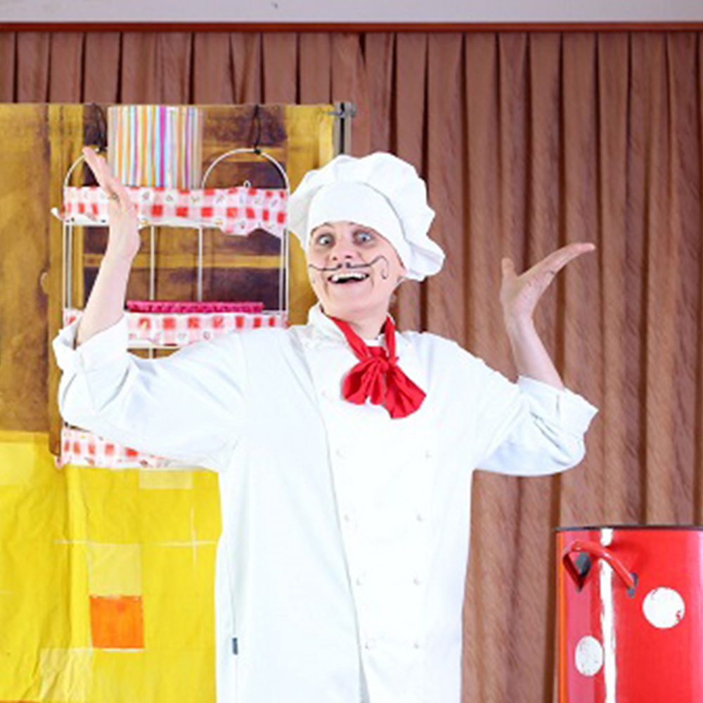 Vloga gledalcev: Pomagajo Maestru natisniti čarobno olivno olje za tolažbo, nahecati česen za hec, namleti moko za prijateljstvo in namakaronati makarone sreče.