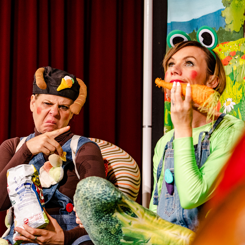 Poučna in humorna predstava o zdravi prehrani in gibanju.